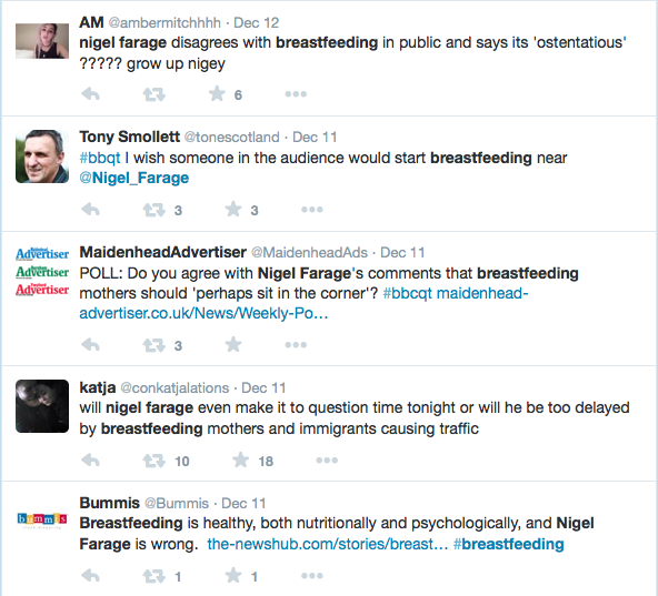 The headlines of ‘Nigel Farage says breastfeeding mothers should be put in a corner’ makes him out to be a horrendous chauvinist boob-Nazi.