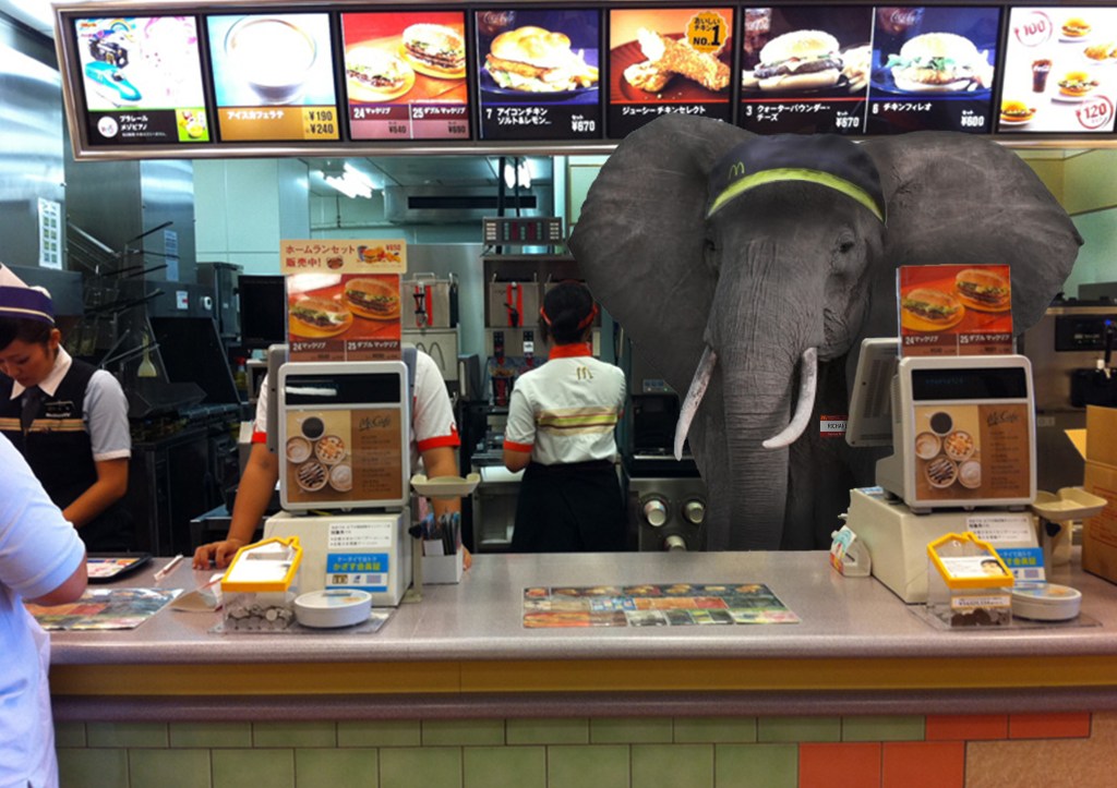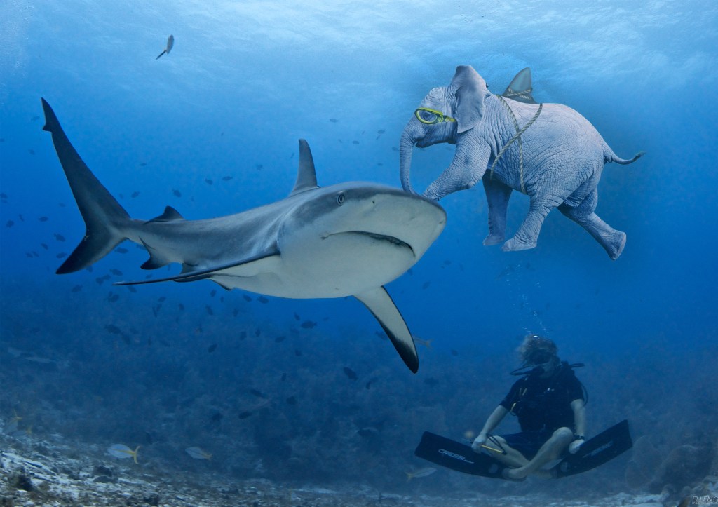 ELLIE: We kind of learnt Photoshop, Illustrator and InDesign as we went, I remember one brief was titled ‘Hide an Elephant’ and the task was to camouflage an elephant into a setting using photoshop although this one hasn’t quite made it to my portfolio.